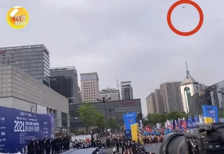 當(dāng)日7:20分,西安馬拉松賽即將鳴槍開跑前,西安市公安局特警支隊(duì)警航大隊(duì)民警發(fā)現(xiàn)在永寧門廣場西側(cè)有未經(jīng)報(bào)備的無人機(jī),為確保賽事和現(xiàn)場群眾安全,警航大隊(duì)民警立即用反制設(shè)備迫使該無人機(jī)返航,待無人機(jī)飛行至無人區(qū)域時(shí),民警又使用反制設(shè)備令無人機(jī)迫降。無人機(jī)操縱者陳某在遙控器信號已被干擾的情況下,強(qiáng)行爭奪無人機(jī)控制權(quán),導(dǎo)致無人機(jī)在起飛點(diǎn)華僑城大廈附近墜機(jī)。陳某被當(dāng)場抓獲,并移交碑林分局巡特警大隊(duì)處理。