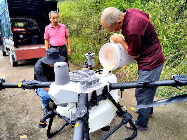“無人機平均每分鐘可施藥1至2畝,工作效率相當于同等時間內(nèi)10個人的工作量,能極大釋放勞動力。而且它采用低空噴灑方式,旋翼產(chǎn)生的向下氣流有助于增強霧流對作物的穿透性,讓農(nóng)藥噴灑更均勻,防治效果更突出。畝用藥水量僅0.1至0.3公斤,是常規(guī)用量的一半,在提升水稻統(tǒng)防統(tǒng)治專業(yè)化水平的同時,也更環(huán)保、節(jié)能。另外,無人機不僅能用于農(nóng)業(yè),在搬運沙石、承載重物等日常生活場景中也能發(fā)揮作用。”萬安鎮(zhèn)好坑村的范志偉介紹道。他表示,萬安作為農(nóng)業(yè)鄉(xiāng)鎮(zhèn),煙稻輪作是當?shù)刈钪匾姆N植模式之一,希望無人機能在全鎮(zhèn)范圍內(nèi)推廣使用,讓農(nóng)戶省時省力的同時也更加直觀的感受到現(xiàn)代農(nóng)業(yè)科技魅力。