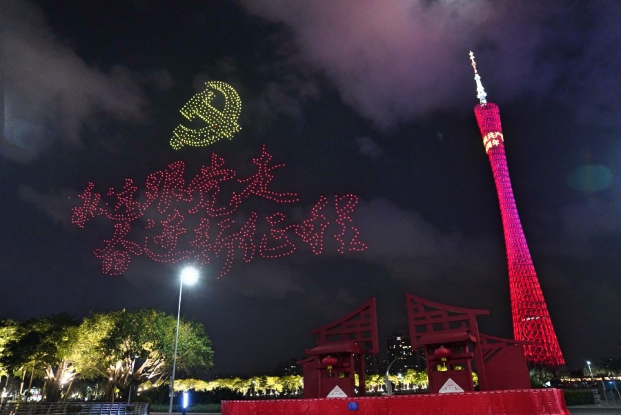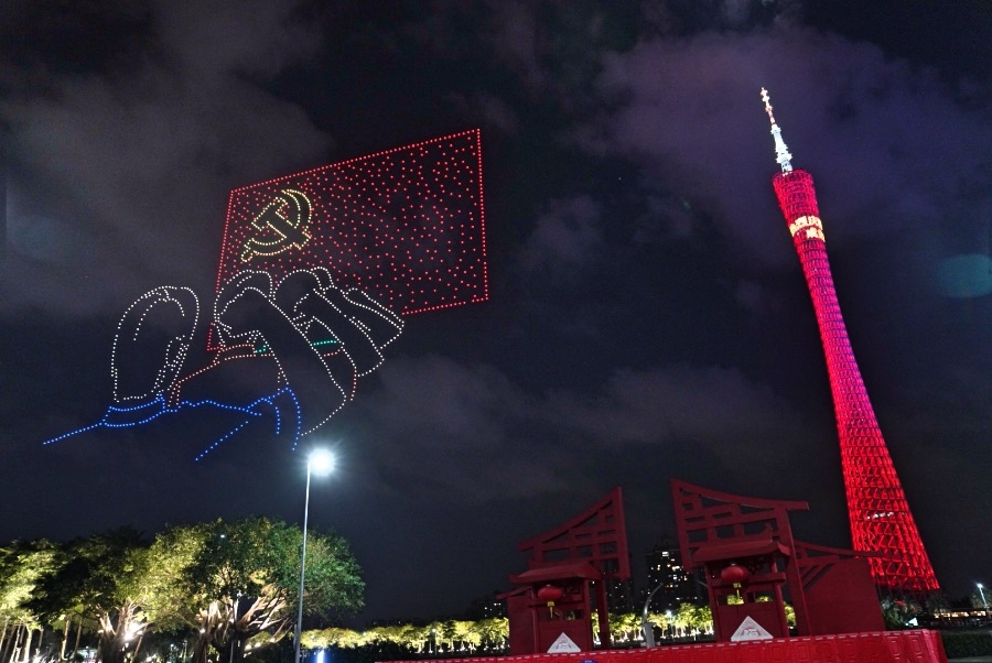 2021年6月20日上午,備受社會及各界矚目的中共三大紀念館終于在改建后重新開放;6月20日晚,羊城夜空,珠江河畔,由廣州市委宣傳部主辦、以“建黨百周年暨中共廣州三大開館”為主題的無人機編隊飛行表演系列活動在廣州如期開展。1520架無人機與小蠻腰做伴,伴隨夜幕星辰及羊城夜空的萬家燈火,向全廣州及全國人民再現(xiàn)中國共產(chǎn)黨的百年征程與先輩們?yōu)閲⒂芦I身的歷史故事。