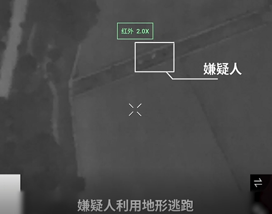 嫌疑人沒有想到的是,位于他上空的無人機已布置一張?zhí)炀W(wǎng),無人機高清紅外熱成像畫面回傳至觀察點,嫌疑人一舉一動都逃不過東陽警方的視野。指揮組根據(jù)無人機實時回傳畫面進行研判,部署首次圍捕方案。