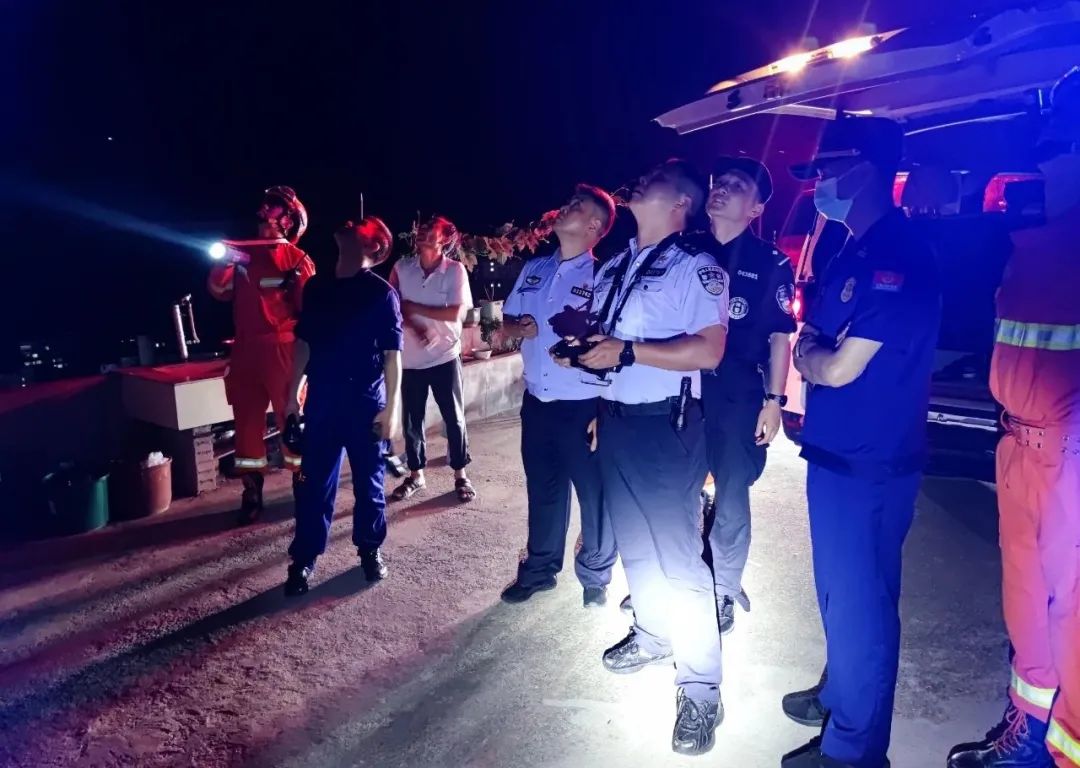 半小時后,地面救援民警、消防隊員在警用無人機的空中導航燈引導下,成功找到被困群眾,并安全下山。