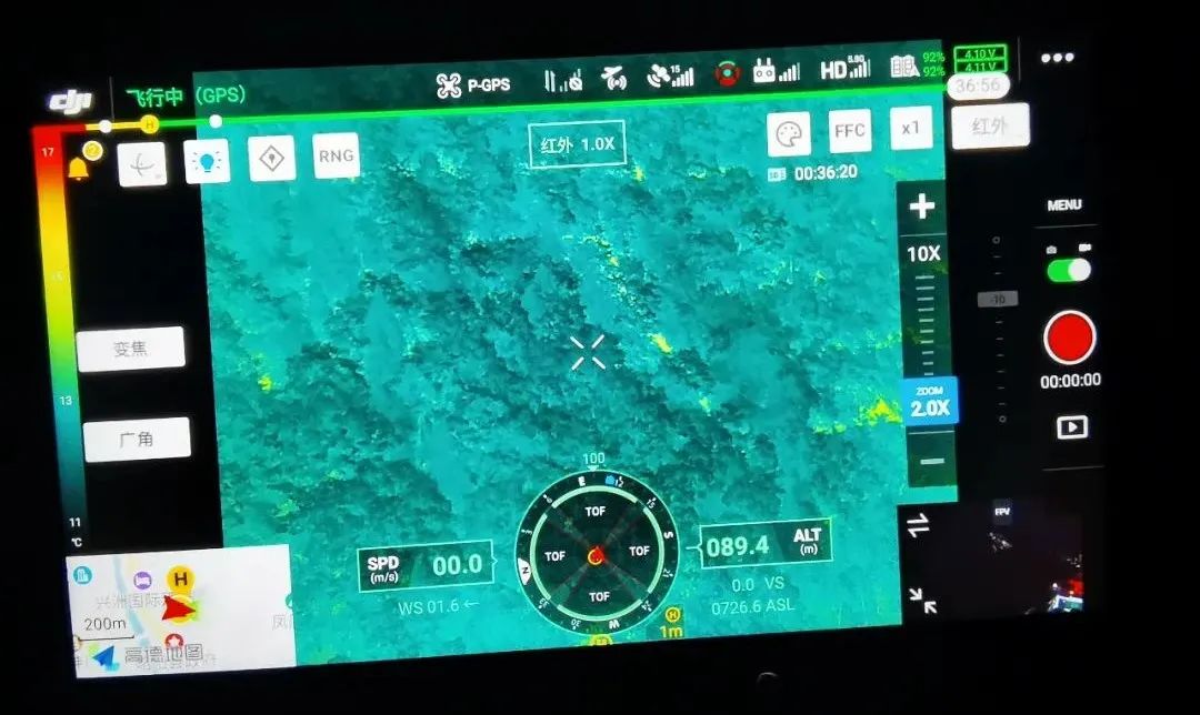 夜間的深山區(qū)伸手不見五指,警用無人機啟動紅外熱成像后,如同白晝般清晰的畫面?zhèn)魉土嘶貋?,迅速排查出一處深溝密林里有可疑熱源,配合高?a title="喊話" target="_blank">喊話器從空中迅速確定了受困群眾所處位置。再通過警用無人機的定位打點功能,在電子地圖上作出標注,并通過分析地形,確定最佳救援路線。