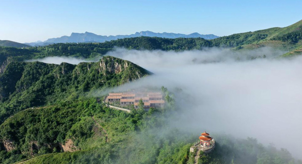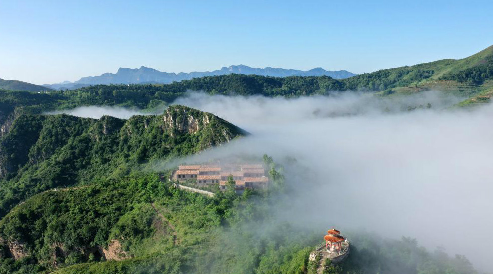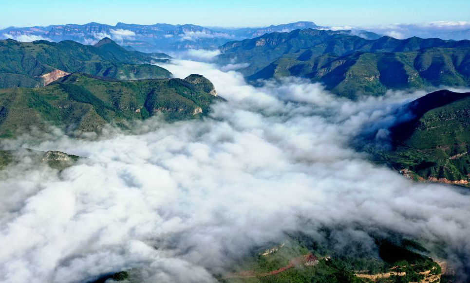 7月3日拍攝的河北省邢臺市天河山景區(qū)云海景觀(無人機照片)。