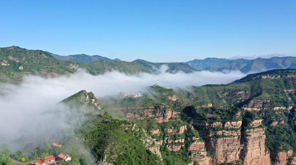 當日,位于太行山深處的河北省邢臺市天河山景區(qū)出現(xiàn)云海景觀,云霧在綠意盎然的峰林間飄蕩,山巒與云海交相輝映,美若畫卷