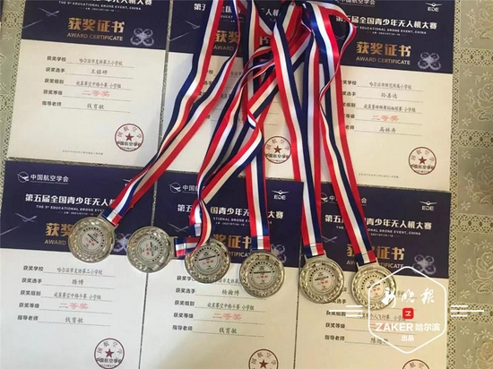 哈爾濱代表隊(duì)共有來自 17 所學(xué)校的 37 名選手代表哈爾濱市參加了 7 個項(xiàng)目 3 個組別的競賽,選手們團(tuán)結(jié)協(xié)作、頑強(qiáng)拼搏,共獲得 13 個二等獎,27 個三等獎,參賽人數(shù)和獲得的獎項(xiàng)均超過往屆。特別是在很多新項(xiàng)目上取得了突破,獲得了優(yōu)異成績。其中,復(fù)華小學(xué)劉睿宸同學(xué)獲得了固定翼無人機(jī)空中偵察賽二等獎,師范附小孫善達(dá)同學(xué)和繼紅小學(xué)任駿業(yè)同學(xué)獲得了旋翼賽蜂群舞蹈二等獎,群力兆麟小學(xué)陳正同學(xué)獲得了旋翼賽迷宮挑戰(zhàn)賽三等獎。