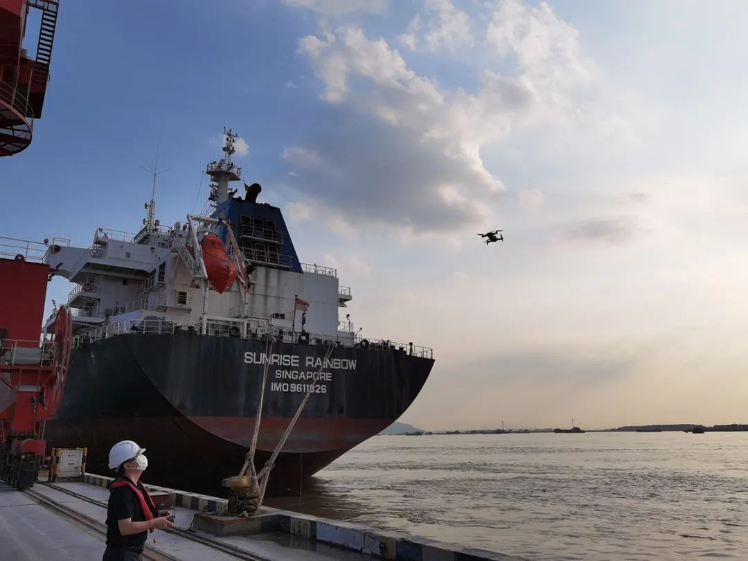 疫情期間,為守住外防輸入疫情安全防線,最大限度減少碼頭登輪檢驗人員在操作中的直接接觸,江蘇公司積極探索利用無人機技術實現口岸水尺觀測的“零接觸”模式。