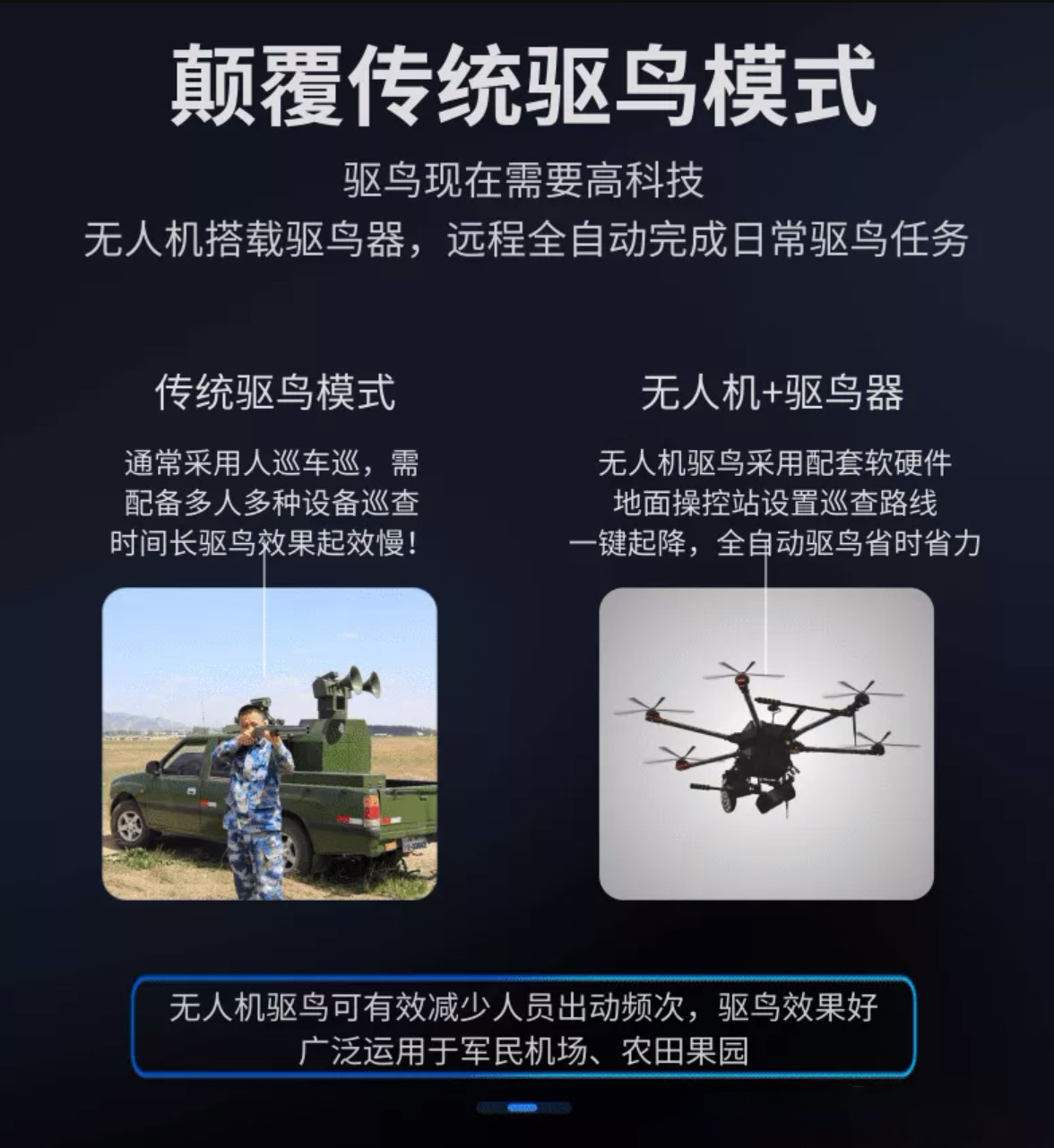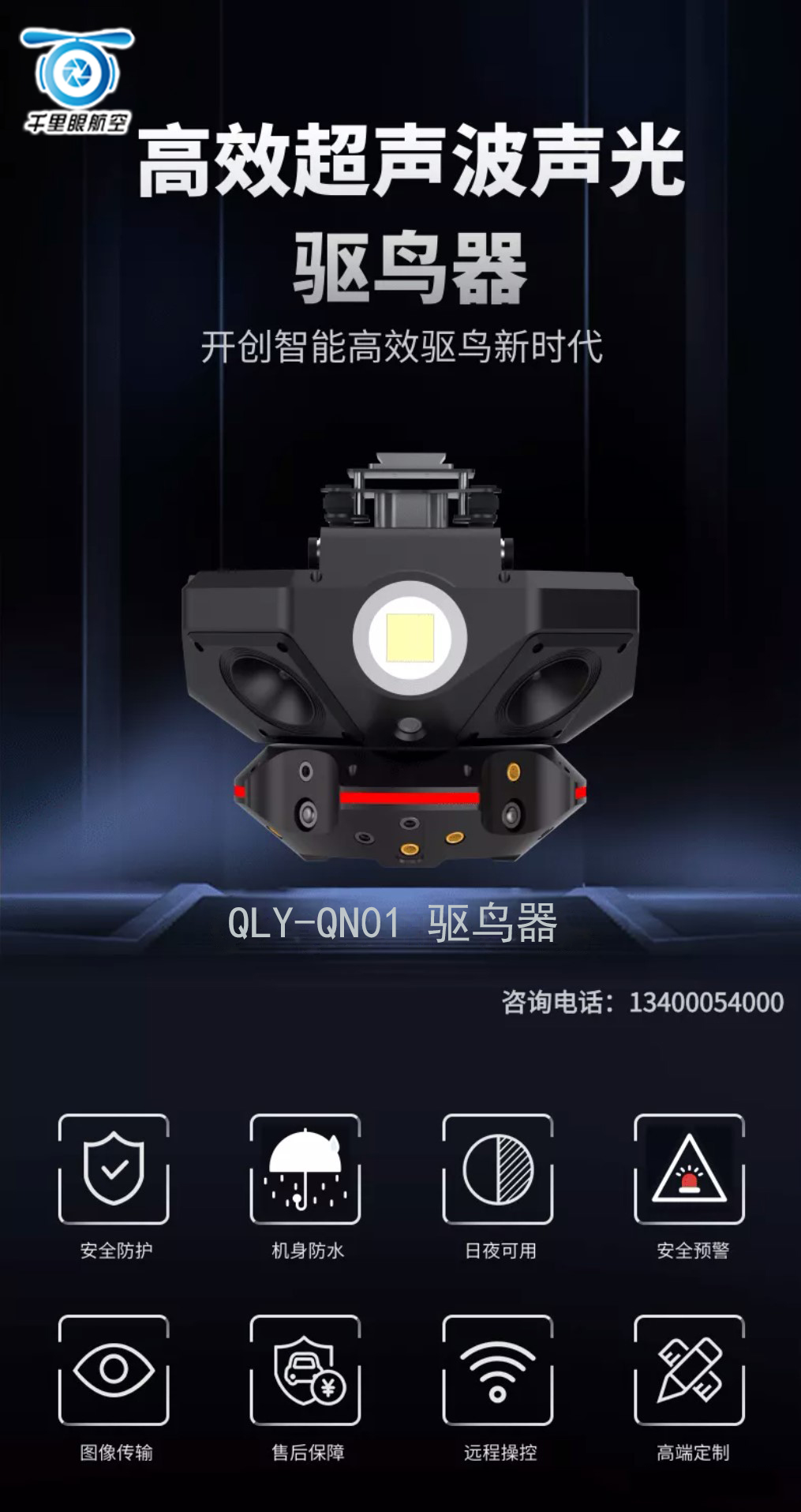 針對(duì)機(jī)場鳥害防控問題,千里眼航空自主研發(fā)了一種專門應(yīng)用于機(jī)場驅(qū)鳥無人機(jī)掛載的智能驅(qū)鳥設(shè)備——QLY-QN01驅(qū)鳥器。全自動(dòng)智能運(yùn)用不同頻率類型的強(qiáng)聲波驅(qū)鳥信號(hào),定向定時(shí)驅(qū)趕各種鳥類。